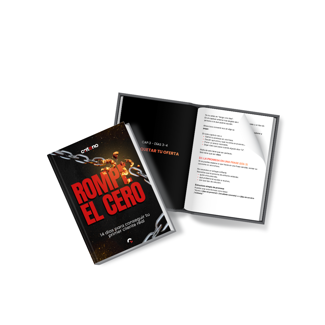 Lees ROMPE EL CERO, aplicas el plan de 14 días y consigues tu primer cliente o, mínimo, conversaciones reales y sistema de acción.